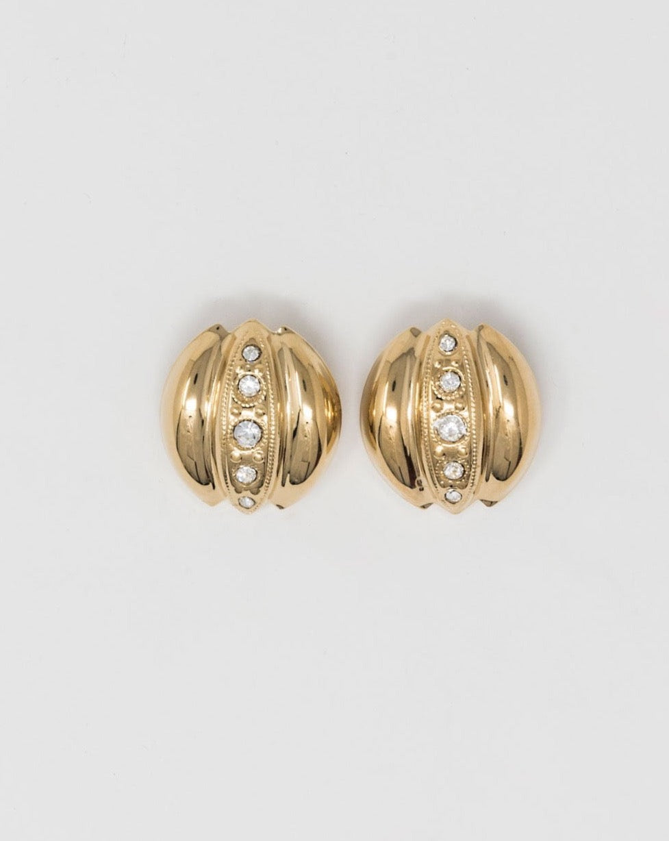 Boucles d'oreilles clous en laiton plaqué or 18 carats avec cristaux Swarovski centraux.
