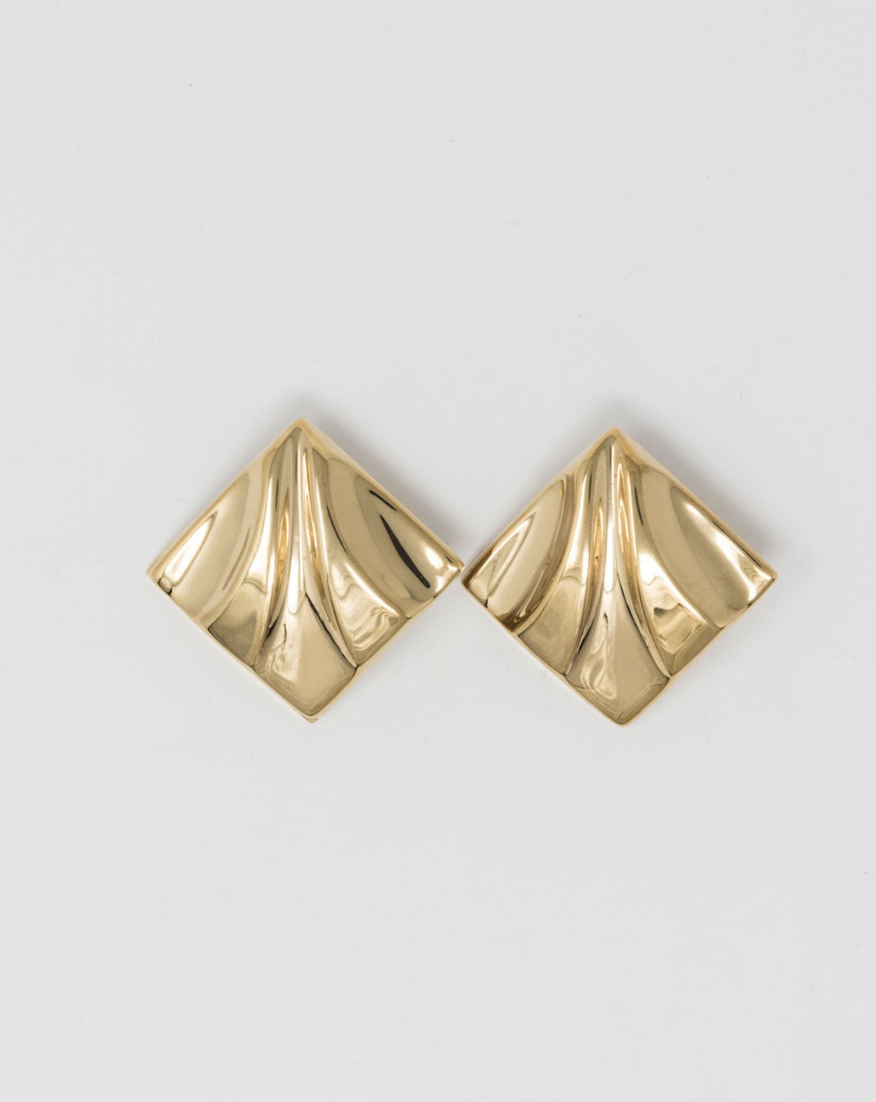 Boucles d'oreilles clous en laiton plaqué or 18 carats avec une forme carrée et une surface irrégulière.