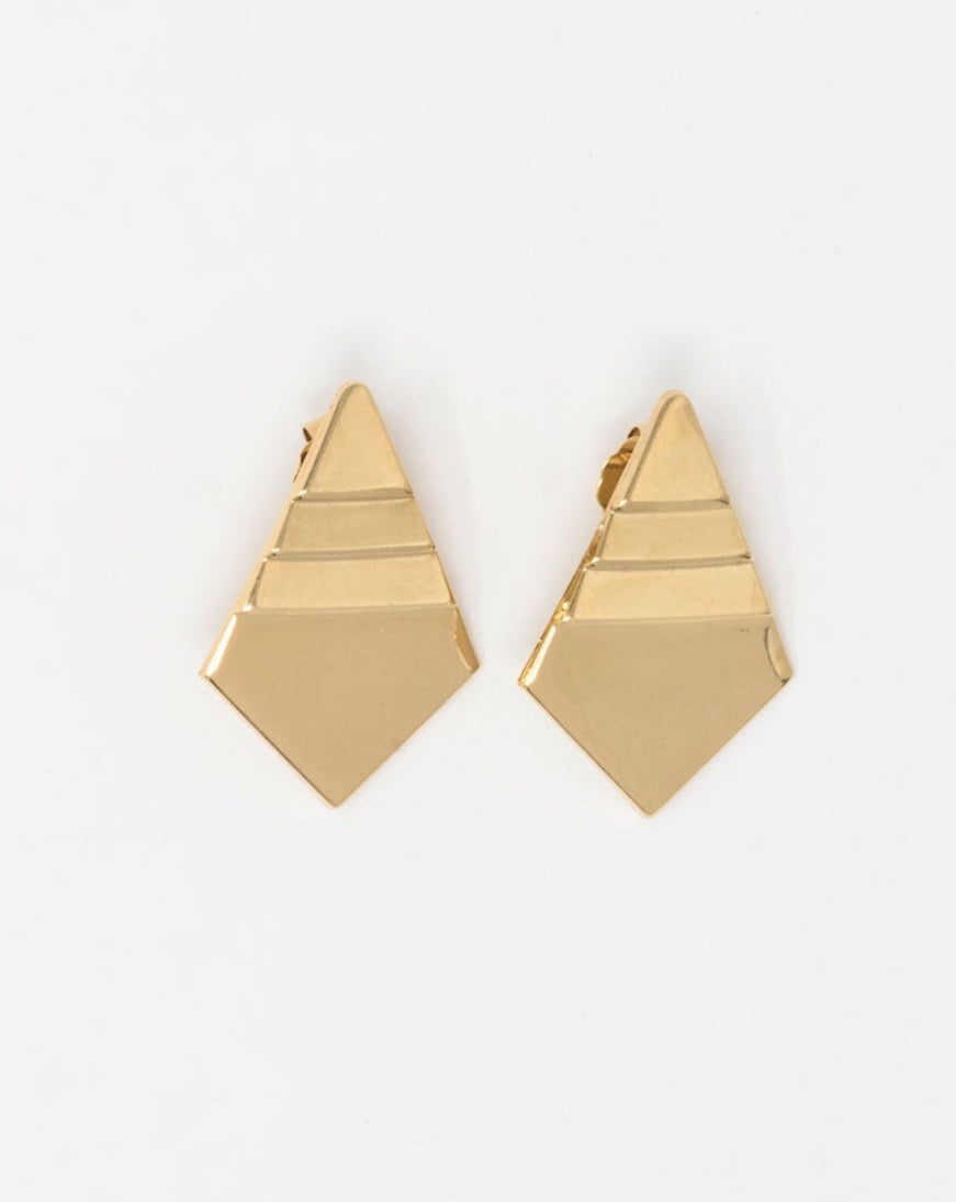 Orecchini al lobo in ottone placcato oro 18k leggermente pendenti dalla forma geometrica irregolare.