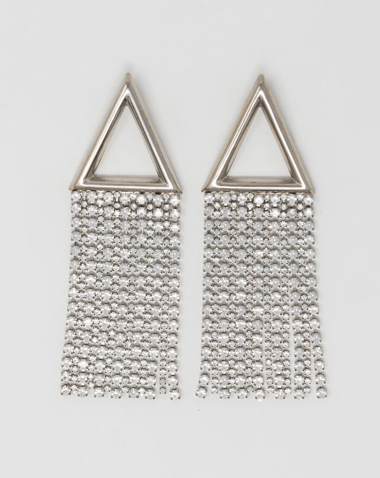 Boucles d'oreilles pendantes en laiton plaqué argent avec élément triangulaire et pendentifs en cristaux Swarovski Crystal.