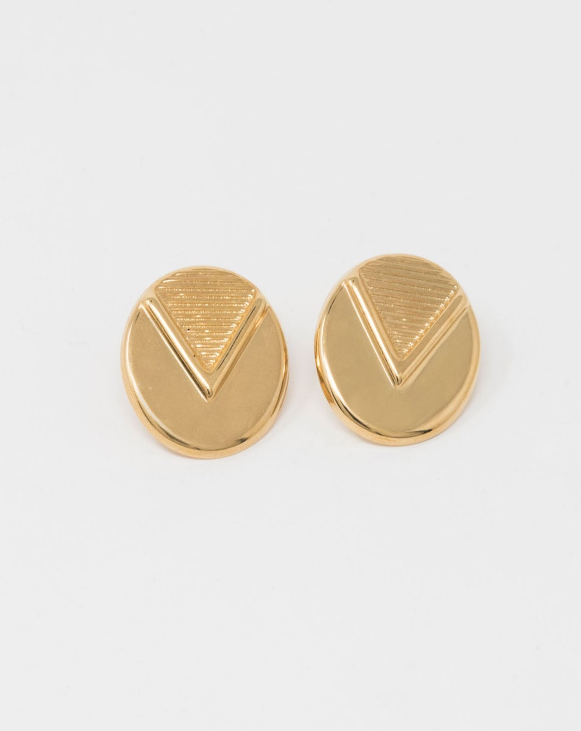 Orecchini al lobo in ottone placcato oro 18k dalla forma ovale con superficie liscia e rigata.